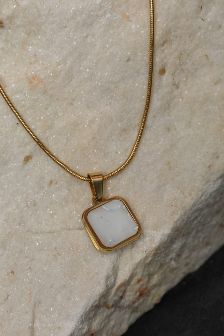 The Gold Chain with White Square Pendant from URVYBE blends classic charm with modern minimalism.