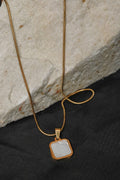 Crafted from high-grade stainless steel, this chain features a polished gold finish and a striking white square pendant that adds contrast, clarity, and confidence to your look.